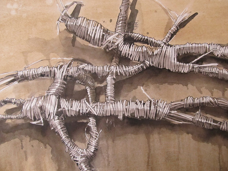 When Will It Stop? (detail). Ink and Mary River flood mud on paper, 110cm x 900cm. 2014